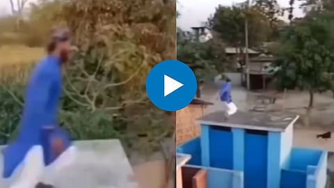 सोशल मीडियावर व्हायरल होत असलेल्या व्हिडिओत एक व्यक्ती टेरेसवरुन उड्या मारताना दिसत आहे. एका टेरेसवरुन दुसऱ्या टेरेसवर जाताना दिसत आहे. टेरेसवर उड्या मारता मारता तो व्यक्ती अचानक खाली पडतो. एका टेरेसवरुन दुसऱ्या टेरेसवर जाताना त्याला पुढे काहीच नाही याचा अंदाजच येत नाही.त्याचा आत्मविश्वास त्याच्याच अंगलट आला आहे. हा व्यक्ती खूप जोरात खाली पडतो. याचा मजेशीर व्हिडिओ व्हायरल होत आहे. (Viral Video)
