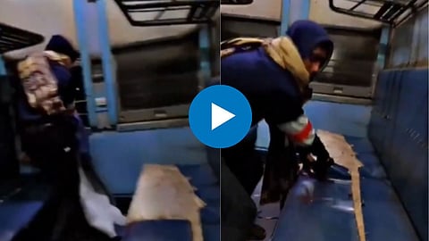 व्हायरल होत असलेल्या व्हिडिओत तुम्हाला ट्रेन दिसत आहे. मात्र ती लोकल ट्रेन नसून एक एक्सप्रेस ट्रेन आहे. या ट्रेनमध्ये एक व्यक्ती आहे जो कोणताही विचार न करता ट्रेनच्या सीटवर असलेले कापड फाडत आहे. एवढ्यावर तो व्यक्ती थांबलेला नाही तर सीटचे कव्हर फाडून धावत्या ट्रेनच्या खिडकीतून बाहेर फेकून देत आहे आणि करत असलेली कृती सोशल मीडिया प्रसिद्ध होण्यासाठी रील्स व्हिडिओमध्ये ते शूट करत आहे. व्हायरल व्हिडिओ पाहून प्रत्येकजण हैराण होत आहे.