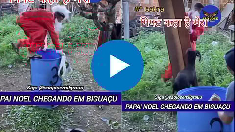 सांता क्लॉजचा ड्रेस घातलेला व्यक्ती त्या ड्रममध्ये लपण्याचा प्रयत्न करत असतो परंतू ड्रमच्या बाजूला एक बकरी असते ती त्याला ड्रम लपण्याच्या आधी तिच्या शिगांने मारण्याचा प्रयत्न करते. तो व्यक्ती ड्रममधून बाहेर निघून पळते तरीही बकरी त्या व्यक्तीची पाठ सोडत नाही. स्वत:ला वाचवण्यासाठी तो सर्व काही प्रयत्न करत असल्याचे व्हिडिओत दिसत आहे. शेवटी तिथं एक व्यक्ती येऊन बकरीला पकडून सांता क्लॉज झालेल्या व्यक्तीची सुटका करतो.