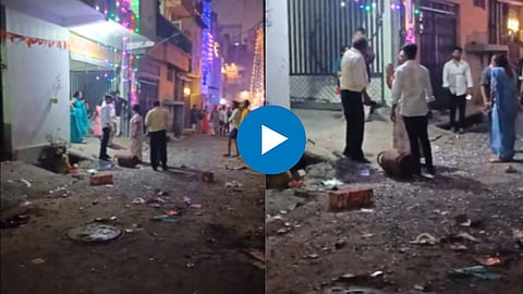 व्हायरल (Viral) होत असलेल्या व्हिडिओत एक नागरी वस्ती दिसून येत आहे. जो परिसर संपूर्ण दिवाळीच्या रोशनाईने सजलेला आहे. अनेक ठिकाणी फटाके फोडताना काही व्यक्ती दिसून येत आहेत मात्र त्या दरम्यान व्हिडिओत पाहिले तर काही कुटुंबात भाडंण होताना दिसून येत आहे. ज्यात भररस्त्यात एक सिलेंडर जमिनीवर पडलेला दिसतो मात्र तुम्ही व्हिडिओ काढणाऱ्या व्यक्तीचे बोलणे ऐकले तर समजले की फटाके (firecrackers) फोडायचे नाही खाली म्हणून एका व्यक्तीने वरुन सिलेंडर फेकून मारलेला आहे. पुढे घडलेली घटना एक व्यक्ती मोबाईमध्ये कैद करत आहे.