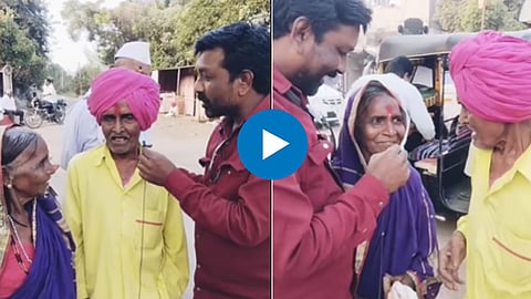 Old Couple Video: सोशल मीडियावर आपल्याला कायम बरेच व्हायरल व्हिडिओ पाहण्यासाठी मिळत असतात. कधी तरुण-तरुणींच्या स्टंटबाजीचे तर कधी हाणामारीचे असतात. अनेकदा व्हायरल व्हिडिओ हे नात्यातील गोडवा दाखवणाऱ्या क्षणांचे असतात, त्यात सध्या एका वयोरुद्ध जोडप्यांचा व्हिडिओ व्हायरल होत आहे, ज्यात चक्क आजोबांना आपल्या बायकोसाठी सुंदर असा उखाणा घेतला आहे.