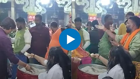 व्हायरल(Viral) होत असलेल्या व्हिडिओ तुम्हाला मंदिराच्या आतील मोठा गाभारा दिसून येत आहे. मंदिराच्या आतमध्ये देवाच्या दर्शानासाठी कमी प्रसाद घेण्यासाठी मोठ्या संख्येने भाविक दिसून येत आहेत. तुम्ही पाहिले तर एक व्यक्ती आलेल्या भक्तांना त्यांच्या हाताने एका मोठ्या भांड्यातील पैसे देत आहे तर दुसरा व्यक्ती त्याच्या हातातील एक एक पैसे त्या भांड्यात ठेवत आहे. व्हिडिओत पुढे पाहिले तर दिसेल की मंदिराच्या बाहेर भाविकांची मोठ्या संख्येने लाईन लागलेली आहे. सध्या याचा व्हिडिओ(Video) सोशल मीडियावर मोठ्या प्रमाणात व्हायरल होत आहे.