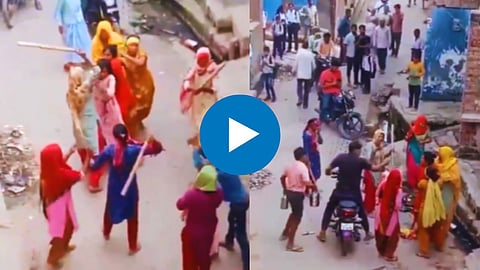 व्हायरल(Viral) होत असलेल्या व्हिडिओत तुम्ही एका रस्त्यावर महिलांचा गट पाहू शकता शिवाय अनेक नागरिकही रस्त्यावर जमलेले आहेत. मात्र व्हिडिओत पुढे या सर्व महिला एकमेंकाना मारताना दिसत आहे परंतू त्यांच्या हातामध्ये चक्क काठ्या आहेत त्याने एकमेंकीना मारत आहे. अगदी रस्त्यावर झोपून एकमेंकीना मार आहेत. नक्की महिलांच्या हाणामारीचे(Fighting) कारण समजू शकलेले नाही, मात्र त्याच परिसरातील एका व्यक्तीने सर्व प्रकार मोबाईमध्ये कैद केलेला आहे.