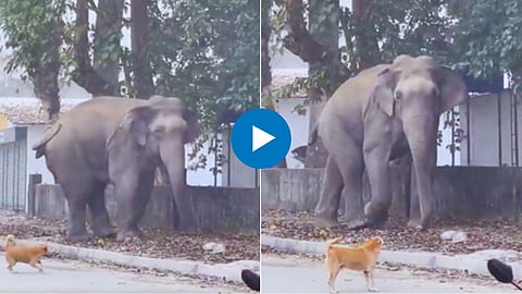 Fuuny Video: सोशल मीडियावर कायम प्राण्यांच्या गमतीदार गोष्टींचे व्हिडिओ व्हायरल होत असतात. त्यातच सध्या असाच एक हत्ती आणि कुत्र्याच्या गंमतीदार गोष्टीचा व्हिडिओ व्हायरल झालेला आहे, ज्यात नक्की काय घडले ते पाहण्यासाठी एकदा व्हायरल व्हिडिओ पहा.