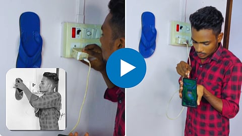 व्हायरल होत असलेल्या व्हिडिओत तुम्हाला घरातील एक खोली दिसत आहे. या व्हिडिओच्या पुढे तुम्हाला एक स्विच बोर्ड दिसत आहे. स्विच बोर्डच्या बाजूला एक चप्पल भिंतीला अडकवली आहे. मात्र तुम्हाला प्रश्न पडलाच असेल की स्विच (Switch) बोर्डच्या बाजूला चप्पल का अडकवली असेल? परंतू व्हिडिओ पूर्ण पाहिला तर समजेल की, तरुणाच्या हातात एक मोबाईल आहे जो त्याला चार्जिंगला लावायचा आहे शिवाय त्याच्या दुसऱ्या हातात चार्जर (Charger) आहे. पुढे तो चार्जर स्विचबोर्डला लावतो आणि मोबाईल तो भिंतीवर अडकवलेल्या चप्पलवर ठेवून देतो.