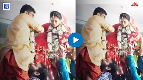 व्हायरल(Viral) होत असलेल्या व्हिडिओत तुम्हाला लग्नाच्या स्टेजवर नवरा आणि नवरी दिसत असून अनेक त्यांच्या कुटुंबातील व्यक्ती दिसत आहे.लग्नाच्या विधी सुरु असताना अति उत्हासात नवरीला उचलण्याचा प्रयत्न करतात मग काय नवरदेवाच्या कुटुंबातीलही नवरदेवाला उचलून घेतात मात्र हा प्रकार स्टंटबाजीमध्ये बदलतो आणि कोण उंच उचलून घेतो ही स्पर्धा लागते.मात्र,तुम्ही पाहिले तर मस्ती मस्तीमध्ये आणि समतोल न साधल्यामुळे दोघेही स्टेजवर जोरात कोसळतात.सर्व धक्कादायक प्रकार कॅमेऱ्यात कैद झालेला आहे.