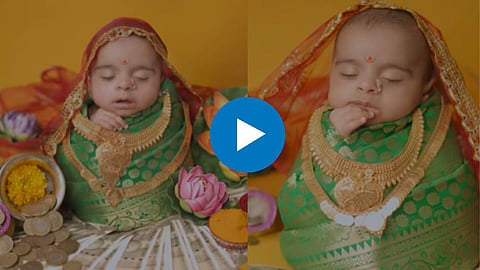 व्हायरल (Viral) होत असलेल्या व्हिडिओत तुम्हाला फोटोशुटचा सेटअप दिसून येत आहे. ज्या व्हिडिओत तुम्हाला पिवळ्या रंगाचा पडदा दिसत आहे त्यावर काही वस्तू आणि पैसे ठेवलेले आहेत. काही वेळात त्या पडद्यावर लहानशा चिमुकलीला फोटो काढण्यासाठी ठेवले जाते. व्हिडिओत पाहिले तर चिमुकली मस्त झोपेत आहे. मात्र तिला एक तरुणी माता लक्ष्मीच्या रुपात तयार केले जात आहे. व्हिडिओच्या शेवटला चिमुकलीचे काढलेले विविध फोटो (Photoshoot)दाखवले जातात.