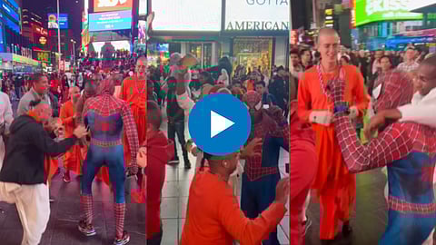 न्यूयॉर्कमधील टाइम स्केअरवर अनेक लोक हरे क्रिष्णा, हरे रामा या भजनावर डान्स करत आहेत. ढोल वाजवत भक्त क्रिष्णाचा जयजयकार करताना दिसत आहे. या व्हिडिओच आकर्षक म्हणजे स्पायडर मॅनची एन्ट्री. स्पायडर मॅनदेखील नाचताना दिसत आहे.