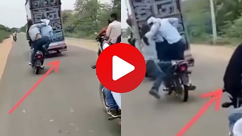 सोशल मीडियावर नेहमीच अनेक अतरंगी व्हिडीओ पहायला मिळतात. अनेक तरुण वाहतुकीचे नियमन मोडतात. नियम मोडल्याने त्यांच्यासह अन्य व्यक्तींना देखील याचा फटका बसतो. अनेक विचित्र अपघात होतात. सध्या सोशल मीडियावर असाच एक व्हिडीओ व्हायरल झाला आहे. या व्हिडिओमध्ये तरुणांनी धावत्या बाईकवर केलेली स्टंटबाजी त्यांच्या चांगलीच अंगलट आलीये.