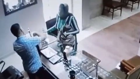 व्हायरल झालेल्या व्हिडिओमध्ये तुम्ही पाहू शकता की, दुकानाच्या काउंटरवर एक पुरुष बसलेला आहे. एक महिला ग्राहक म्हणून दुकानात येते. दुकानदार सामान दाखवण्यात व्यस्त असताना महिलेने आपल्या पिशवीतून एक स्प्रे काढून दुकानदाराच्या डोळ्यावर मारला. परंतु दुकानदाराने लगेच मान फिरवल्यानं त्याला कोणतीच इजा झाली नाही. त्यानंतर दुकानातील एक वस्तू उचलून महिलेला मारून फेकली. त्या वस्तूच्या मारमधून ती महिला चोर सावरत नाही तोच दुकानदार तिच्यापर्यंत पोहोचतो आणि तिच्यावर हल्ला चढवतो. एकामागोमाग तीन-चार चपराक त्या महिलेला लगावतो.