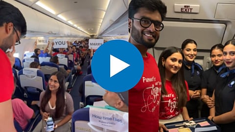 व्हिडिओमध्ये पुढे दिसत आहे की, तरुण विमानात समोर उभा आहे. तो उभा राहताच विमानात रोमँटीक म्यूजिक सुरू होतं. तसेच समोर बसलेले अन्य चार प्रवाशी आपल्या हातात माझ्याशी लग्न करणार का? असं लिहिलेलं पोस्टर घेऊन उभे राहतात. तर त्याचवेळी तरुणी आपले दोन्ही गुडघे खाली टेकवून त्याला प्रपोज करते. हे सर्व पाहून तरुण फार खुश होतो. तो तरुणीला नक्कीच मी तुझ्याशी लग्न करणार, असं म्हणतो.