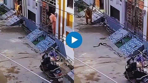 Snake Viral Video: सोशल मीडियावर कायम अनेक प्राण्यांचे व्हिडिओ व्हायरल होत असतात. त्यातही जास्तीत जास्त व्हिडिओहे भल्या मोठ्या सापांचे असतात. कधी हे साप घरातील बेडरुममध्ये आढळतात तर कधी अथंरुणात. सध्या अशात एक थरकाप उडवणारा व्हिडिओ व्हायरल होत आहे, ज्यात चक्क घराच्या बाहेर एक भलामोठा कोब्रा साप दिसून आलेला आहे.