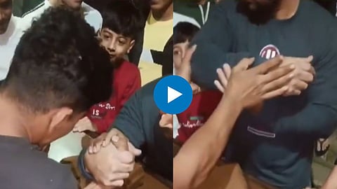 व्हायरल (Viral)होत असलेल्या व्हिडिओ तुम्हाला दोन तरुण पंजा लढवण्याची शर्यत लढताना दिसत आहे. तरुणांच्या बाजूला अनेक व्यक्ती तसेच काही लहान मुलंही आहेत जे तरुणांमध्ये कोण जिंकत ते पाहत आहेत. काही वेळात तरुणांची पंजा लढवण्याची शर्यत(sharyat) सुरु होते. दोघेही मजबुतीने पंजा लढवत असतात मात्र काही क्षणात त्यातील एका तरुणाचा हातच तुटला जातो. हे पाहून तिथे असलेले प्रत्येकजण हैराण होतात. सर्व घटना मोबाईलमध्ये कैद झालेली आहे.